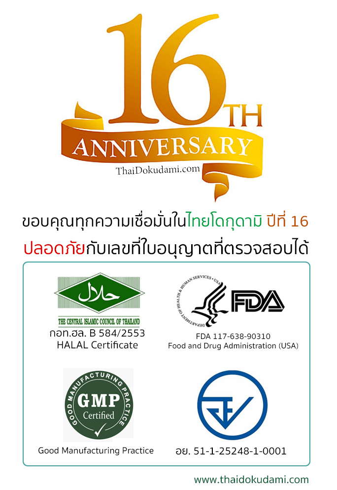 ติดต่อสั่งซื้อโดกุดามิ โทร 085-1558872 แอดไลน์เบอร์โทร 0851558872 Facebook : ThaiDokudami เดินทางมารับสินค้าด้วยตนเอง 15/17 Shop17 อาคาร T5 ชั้น 1 คอนโดเมืองทองธานี ต.บ้านใหม่ อ.ปากเกร็ด จ.นนทบุรี |